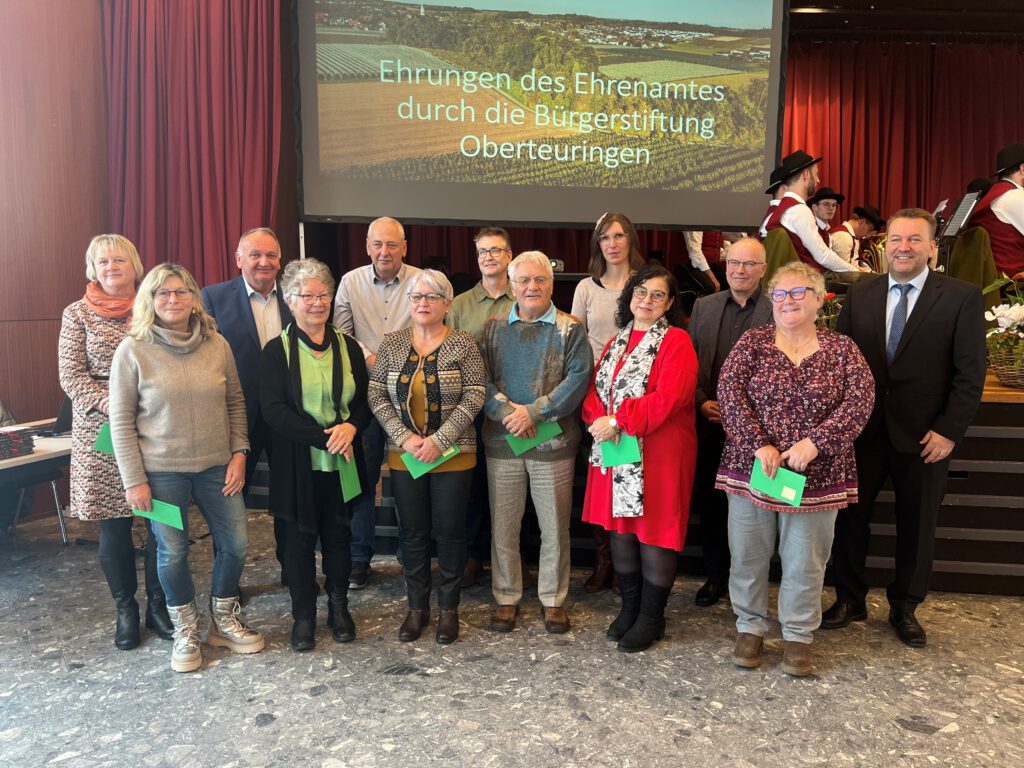 Ende des Jahres 2024 lud die Bürgerstiftung wieder die Oberteuringer Bürgerschaft ein, Menschen aus Oberteuringen vorzuschlagen, die sich in 2024 mit ihrem Ehrenamt in der Gemeinde eingebracht hatten. Im Rahmen des Neujahrsempfangs am 5. Januar 2025 würdigten die Stiftungsräte Manfred Schnitzler und Johannes Keller den großartigen ehrenamtlichen Einsatz von zehn bürgerschaftlich Engagierten im zurückliegenden Jahr 2024. Die Vorschläge wurden zuvor aus der Bevölkerung gesammelt. Da die Vorschlagsliste wie bereits im Vorjahr mehr als zehn Namen enthielt, entschied das Los.